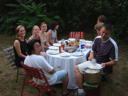 kristin und adi verabschiedeten sich mit einem essen im garten für diesen sommer, um im orient - in tunesien und ägypten - praktische erfahrungen mit chaotischem städtebau, heißer sonne, scharfem essen und schwankenden kamelen zu machen.