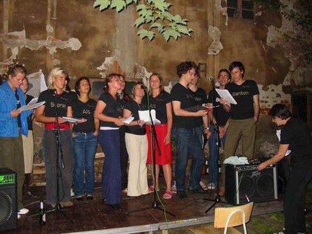 blau weiße fantasien in rot weiß, ein einsames quietscheentchen, ein verhülltes fahrrad... die karlstraße wurde 10 jahre. bewohnerInnen und freundInnen schufen in einem workshop kleine kunstwerke rund ums haus und feierten mit live musik und feuer eine riesen party.